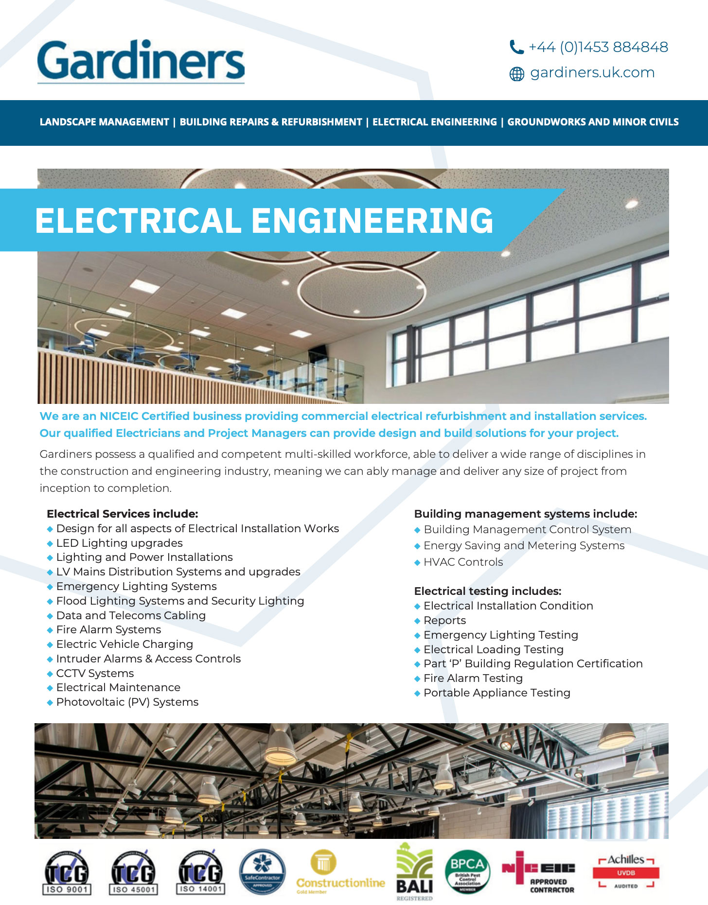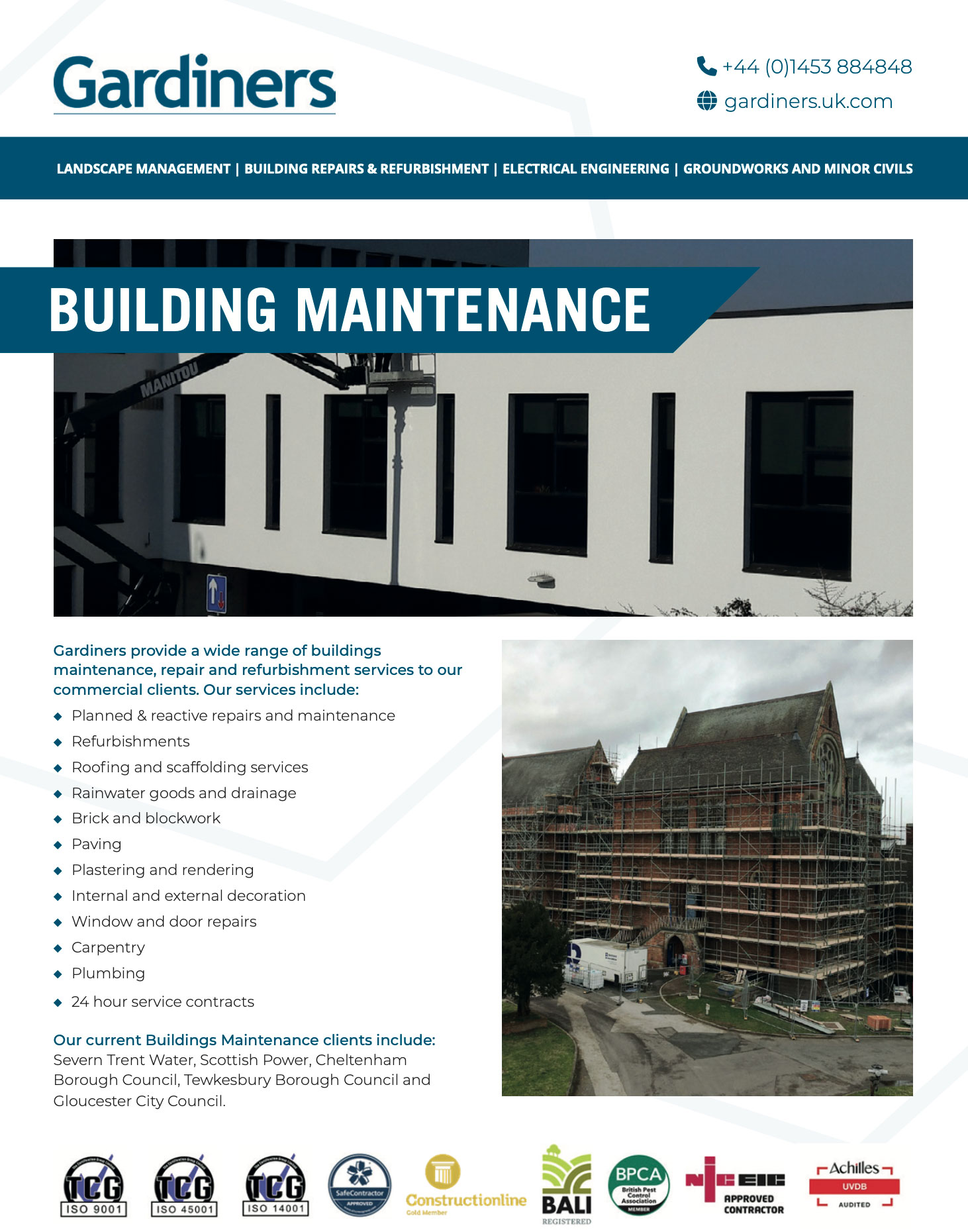 Company Literature Download our service flyers below: Buildings Maintenance Construction & Civil Engineering Electrical Engineering Landscape Management